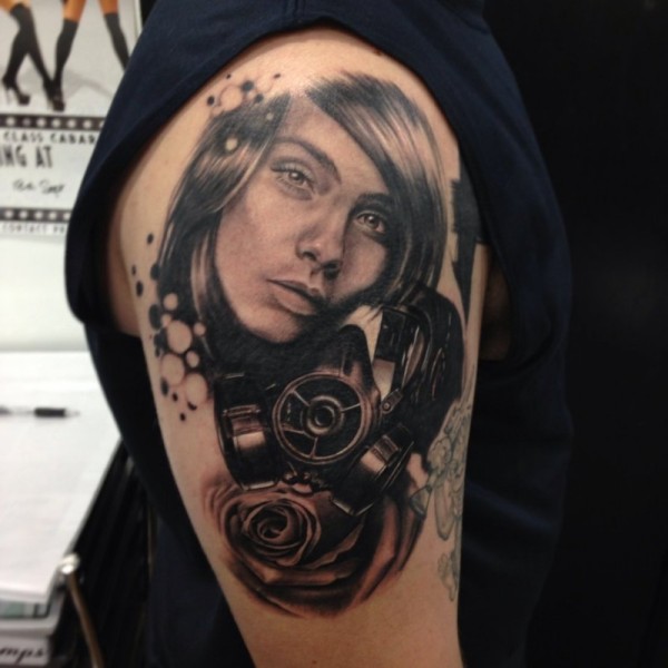 现实主义风格的黑灰女人肖像纹身图案