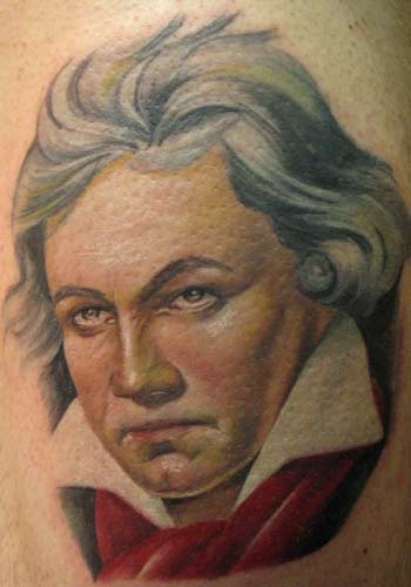 肩部插画风格彩色中世纪男子肖像纹身