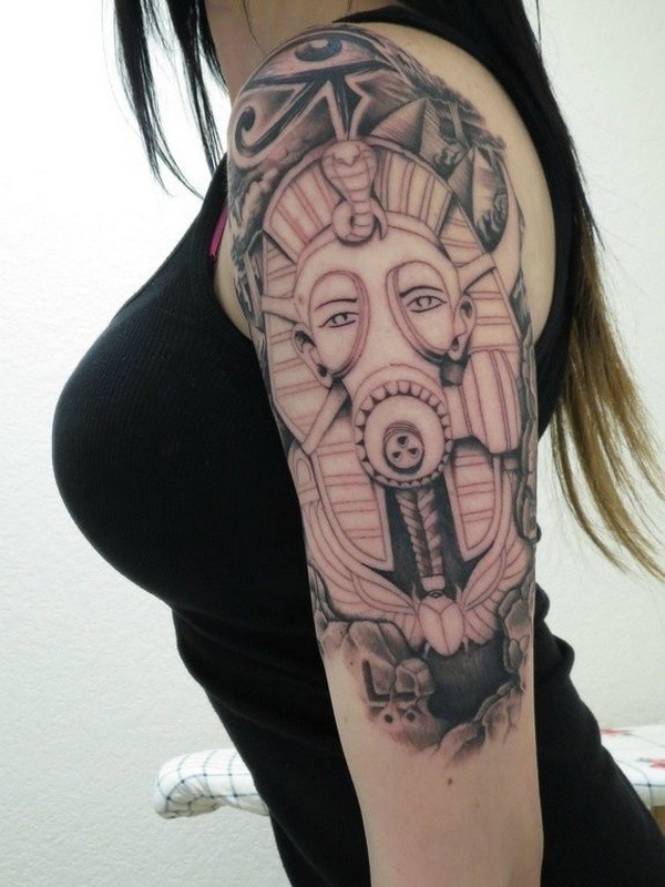 女性肩部埃及法老雕像防毒面具纹身
