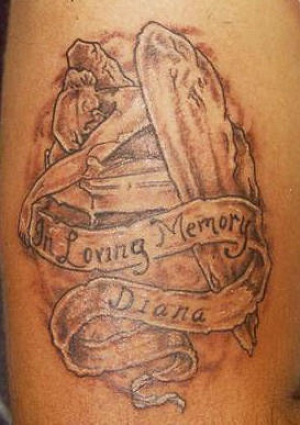 肩部棕色墓碑英文纪念纹身图片