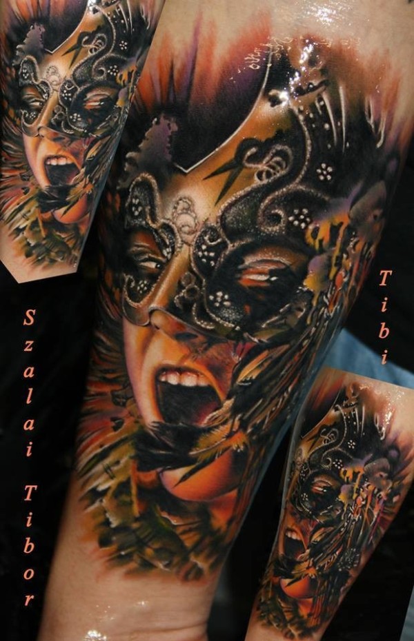 全新大流派彩色女子面具纹身图案