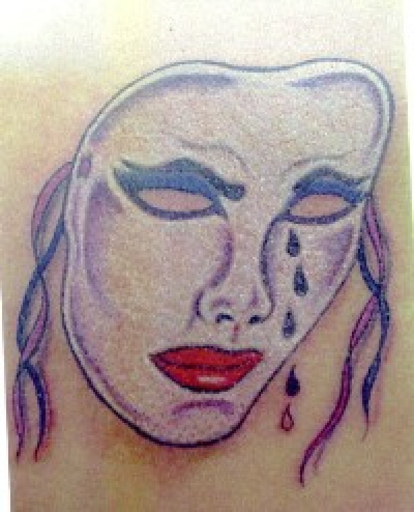 腿部彩色哭泣的戏剧面具纹身
