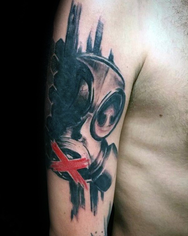 手臂全新风格的彩色防毒面具纹身