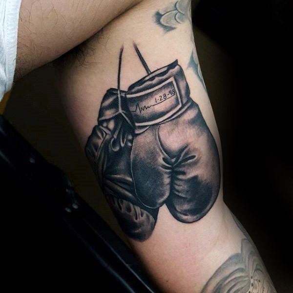 手臂现实主义风格的彩色纪念拳击手纹身