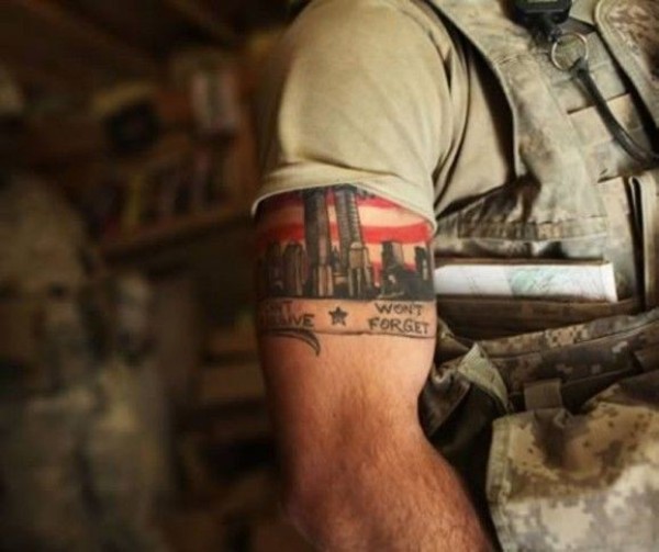 肩部彩色阿富汗美军士兵纹身图片