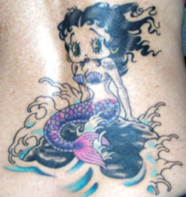 腰侧彩色贝蒂娃娃美人鱼纹身