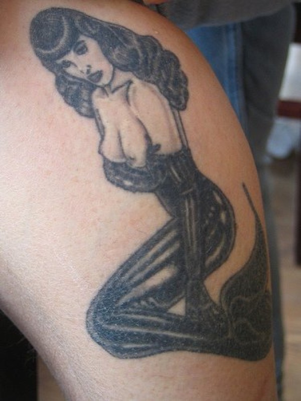 腿部黑色性感美人鱼纹身图片