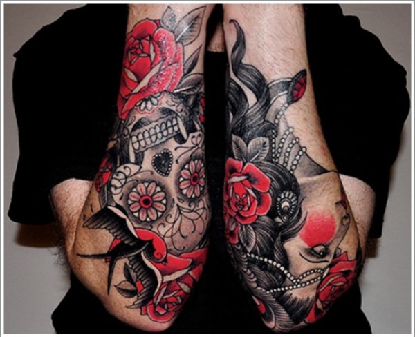 手臂传统的墨西哥风格彩绘骷髅纹身