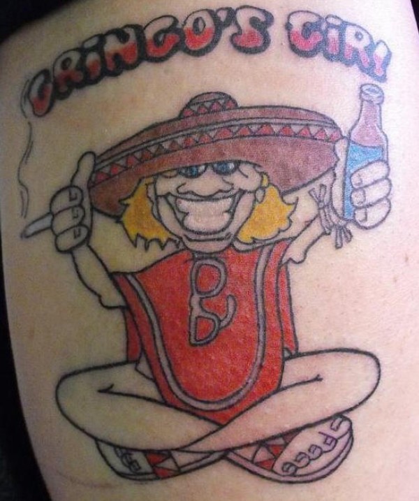 手臂彩色卡通墨西哥吸烟者纹身
