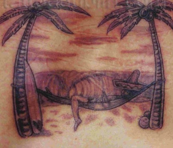 背部棕色墨西哥沙滩冲浪纹身图案
