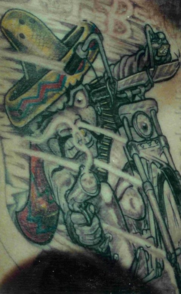 背部彩色墨西哥强盗纹身图片