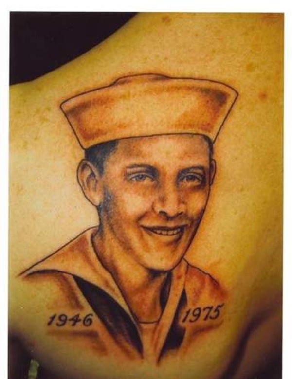 肩部棕色军人水手肖像纹身图案