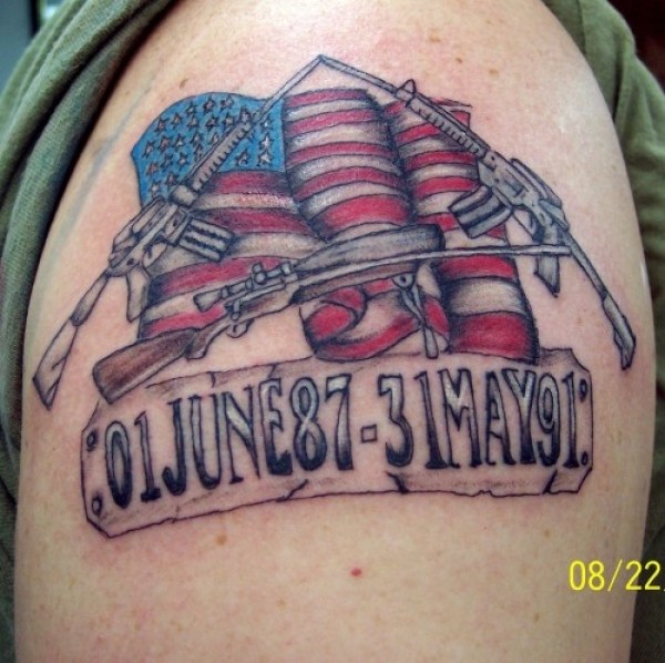 肩部彩色美国军事标志纹身图案