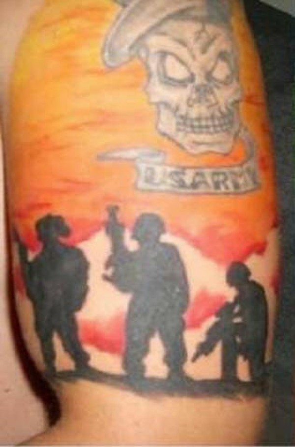 肩部彩色美国陆军士兵剪影纹身