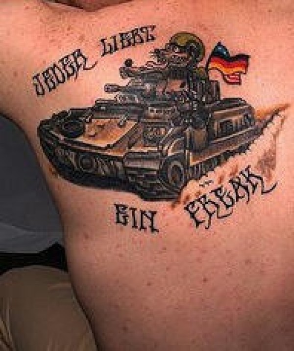 肩部彩色德国军事坦克纹身图案