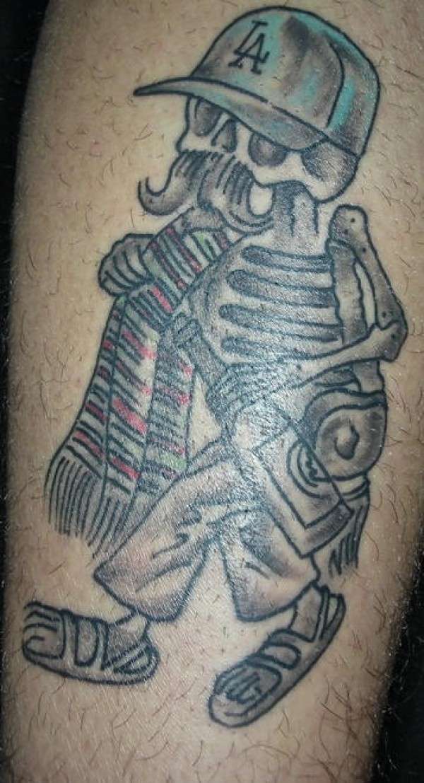 手臂黑灰墨西哥骷髅纹身图案