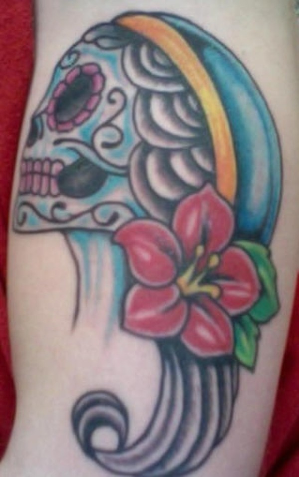 手臂彩色墨西哥骷髅纹身图案