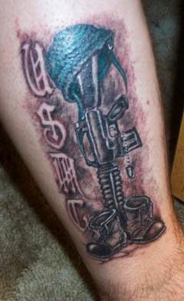 腿部黑棕色美国海军士兵尸体纹身