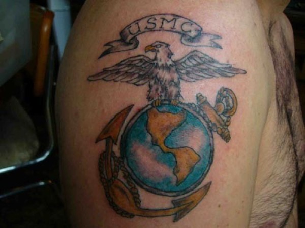 肩部彩色美国军事标志纹身图案