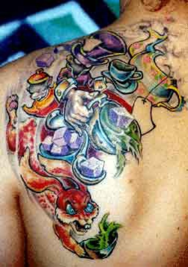 肩部彩色狡猾飞天狐狸纹身图案