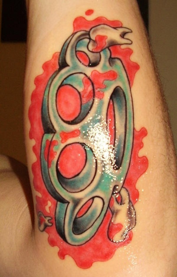 男性手臂彩色牙齿掸子纹身图案