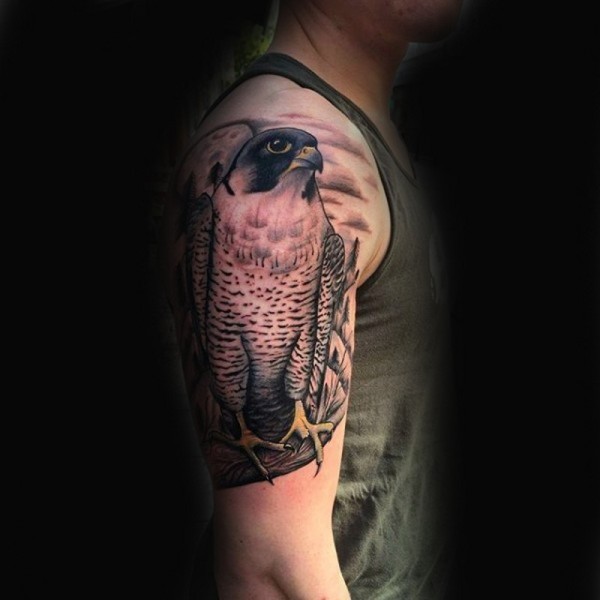 肩部逼真的自然彩色老鹰纹身图案