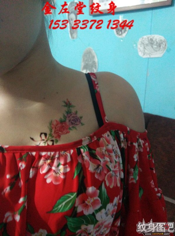 胸部玫瑰花纹身