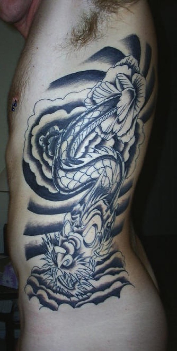 龙纹身手稿_一组老传统黑灰龙手稿纹身图案