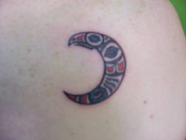 肩部彩色部落月亮新月纹身图案