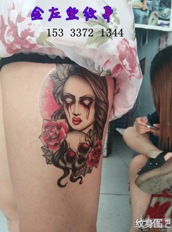 传统花腿纹身--18张传统风格的大花腿纹身图案作品