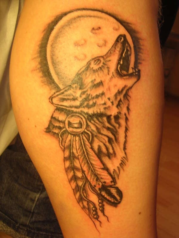 手臂棕色Wolf tattoo狼与月亮纹身