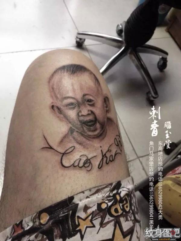 清纯女孩腿上可爱肖像纹身图片_肖像纹身图案大全_纹身图吧