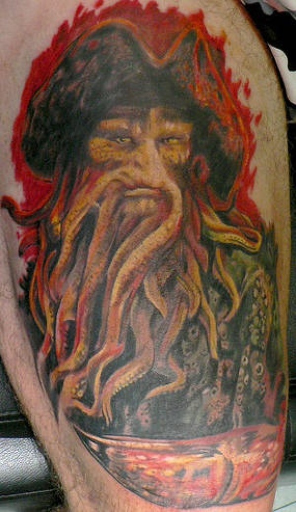 肩部彩色戴维·琼斯加勒比海盗纹身