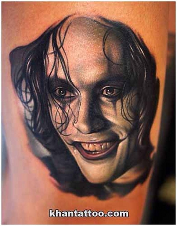 手臂彩色逼真英雄肖像纹身图案