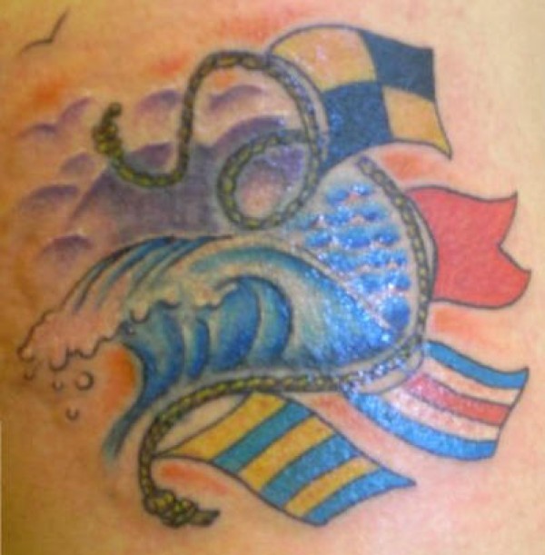 肩部彩色绳索水手旗纹身图案