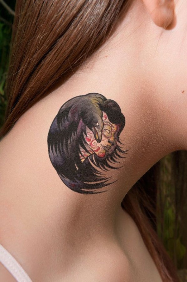 女性脖子彩色女魔头纹身图案