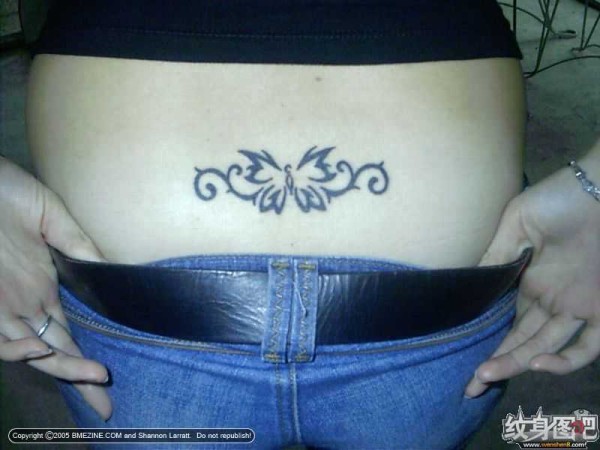分享一款腰部时尚性感的蝶恋花纹身图案_腰部纹身图案大全_纹身图吧