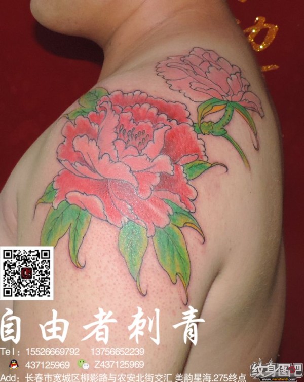 牡丹花纹身 长春自由者刺青