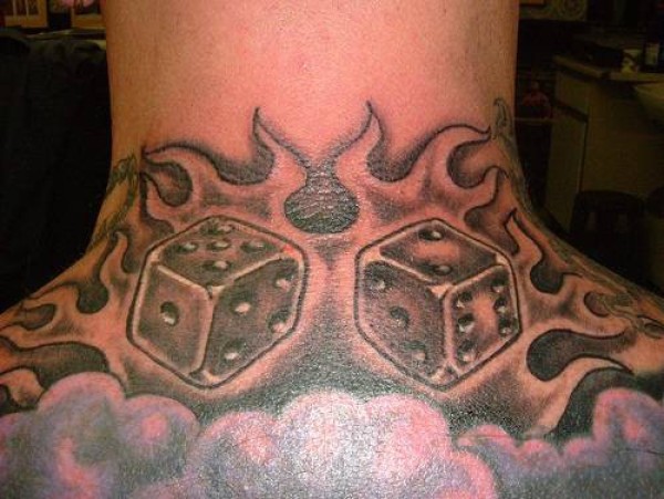 脖子黑灰火焰骰子纹身图案