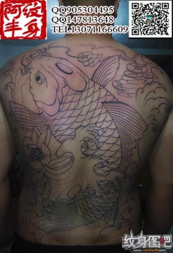 后背纹身图案 后背刺青纹身图片 后背招财鱼纹身 后背最时尚纹身