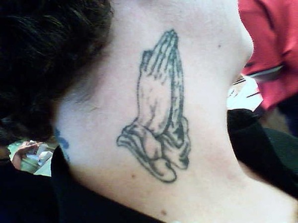 脖子黑色祈祷之手纹身图案
