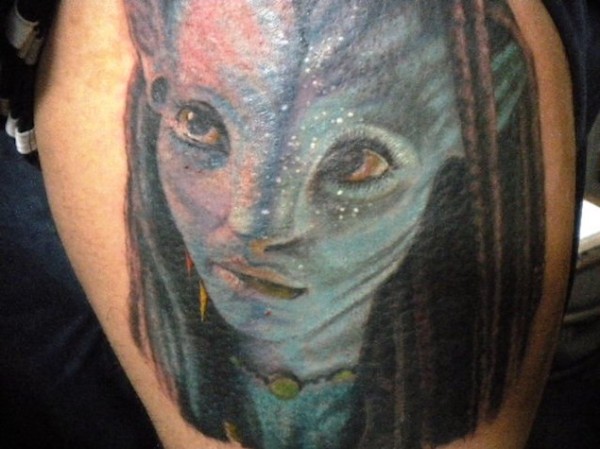 肩部彩色阿凡达头肖像纹身图案