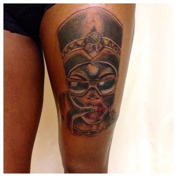腿部彩色old school埃及女子纹身