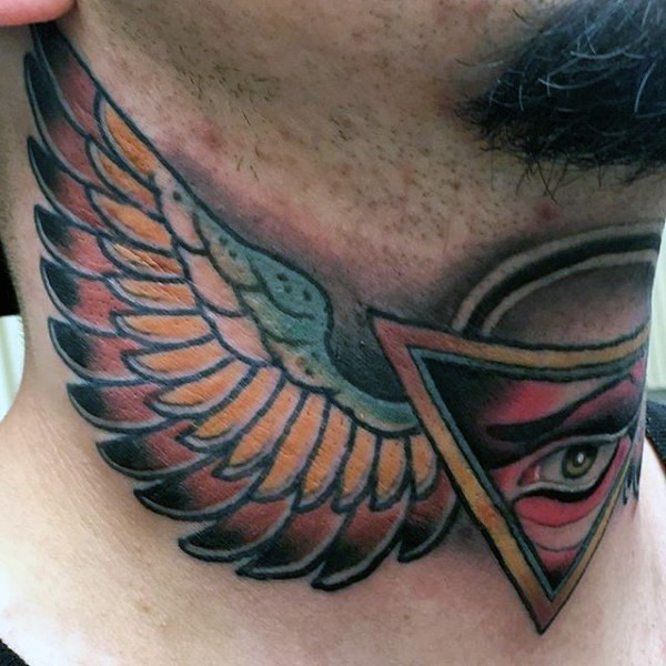 脖子old school彩色金字塔纹身图片