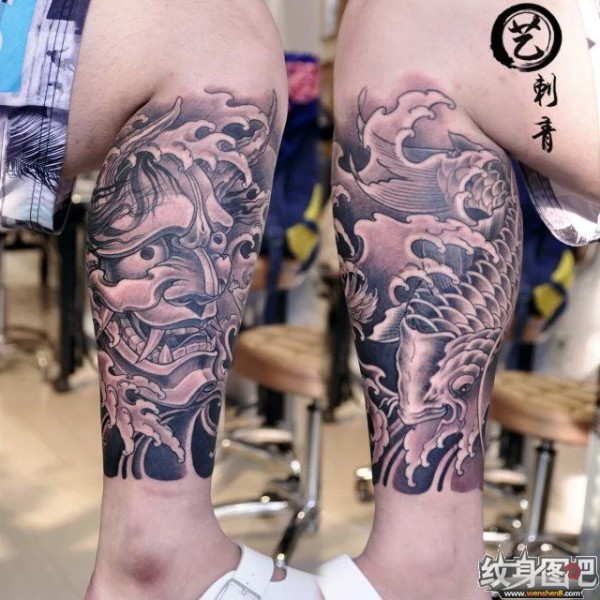鲤鱼-般若包小腿纹身-沈阳纹身-艺刺青