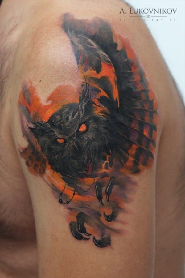 现代风格的彩色神秘猫头鹰纹身
