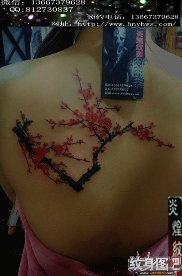 后肩唯美花藤英文图案图片_植物纹身图案大全_纹身图吧