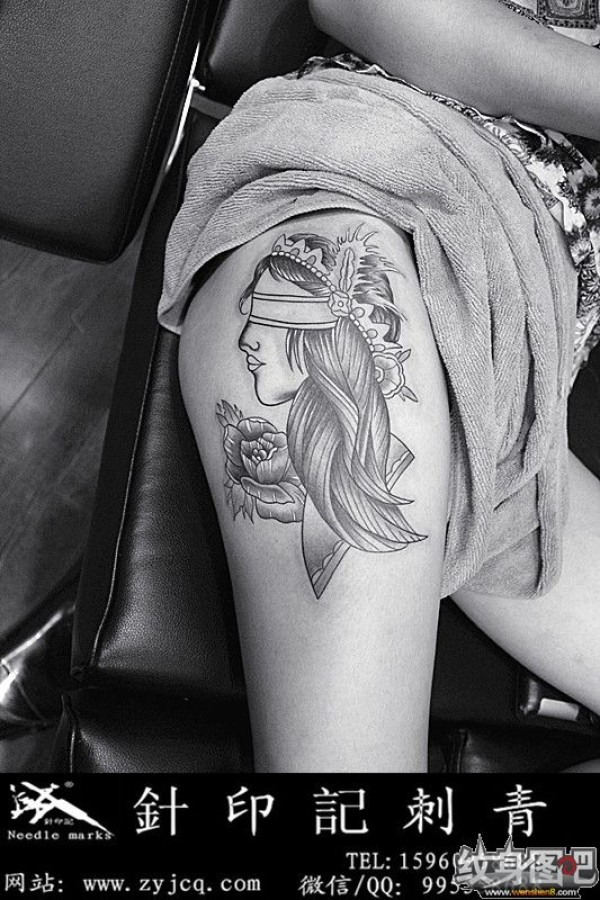大腿纹身-美女纹身-福建三明沙县针印记纹身-胡宇作品