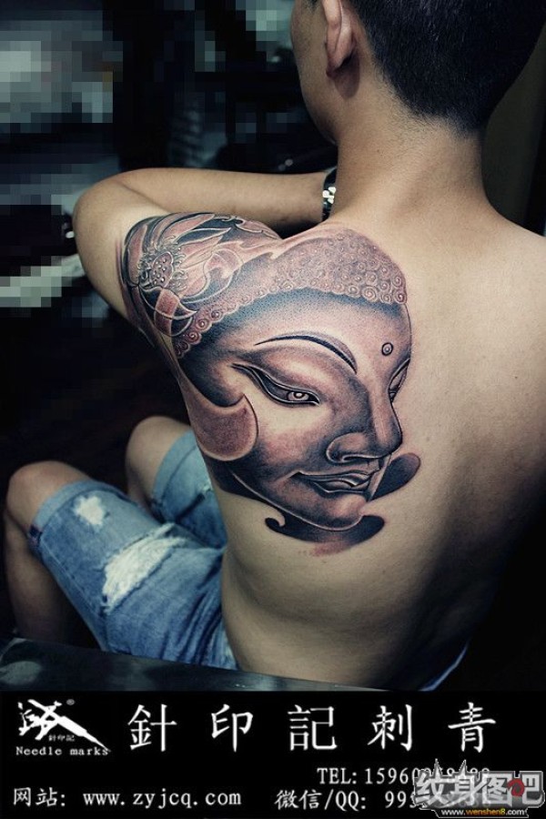佛头纹身-肩膀纹身-福建三明沙县针印记纹身