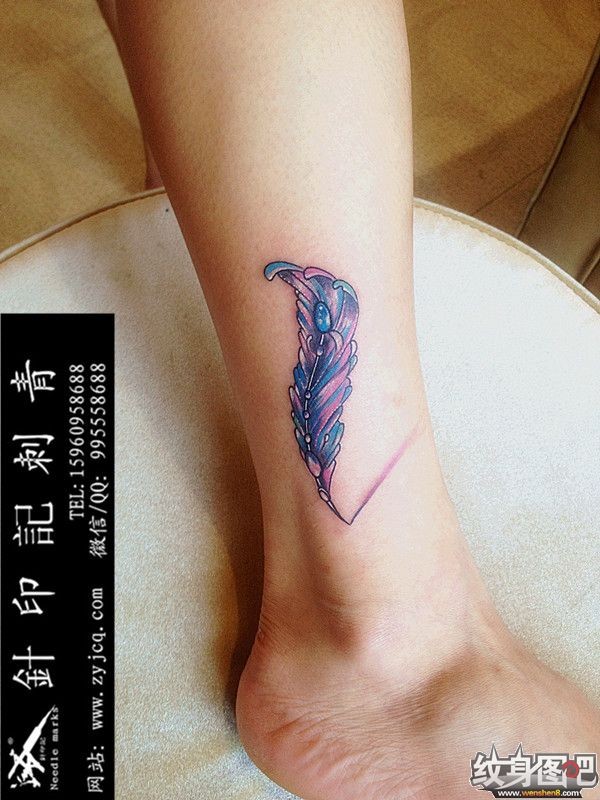 羽毛纹身-脚裸纹身=福建三明沙县针印记纹身